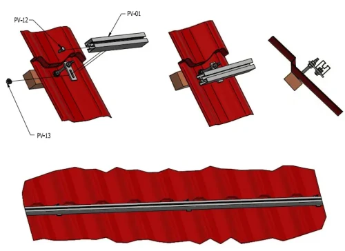 Le profilé de montage convient à la fixation de panneaux photovoltaïques à l'aide d'étriers centraux et d'étriers d'extrémité. Les pinces sont fixées sur le rail supérieur du profilé. Le rail inférieur permet de monter le profil sur des adaptateurs, des crochets de toit ou des triangles.