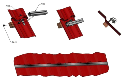 Le profilé de montage convient à la fixation de panneaux photovoltaïques à l'aide de pinces intermédiaires et terminales. Les pinces sont fixées au canal supérieur du rail du profilé. Le canal inférieur du rail permet le montage du profilé sur des adaptateurs, des crochets de toiture ou des triangles.