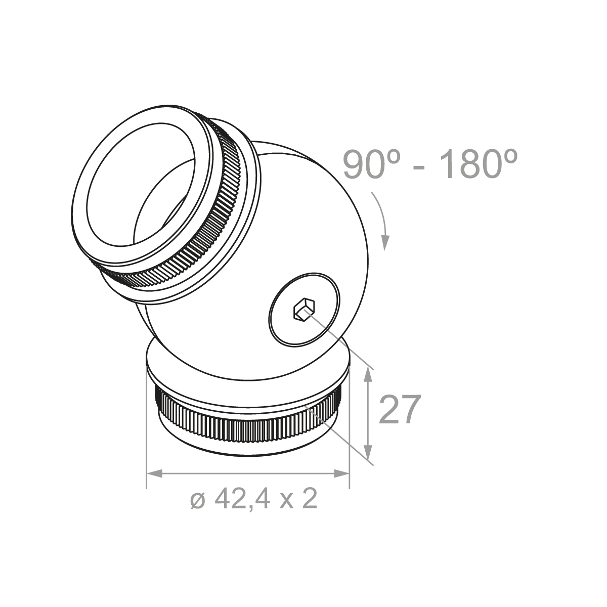 Raccord articulé à rotule réglable 90°–180° pour tube ø 42,4 mm – acier inoxydable AISI 304 satiné
