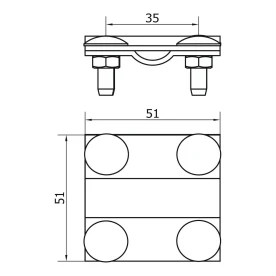 Les dimensions du raccord sont de 51 × 51 × 35 mm, ce qui assure une construction compacte tout en conservant une fonctionnalité complète. La désignation B dans le nom du produit fait référence à la largeur maximale du feuillard pouvant être fixé dans le raccord.