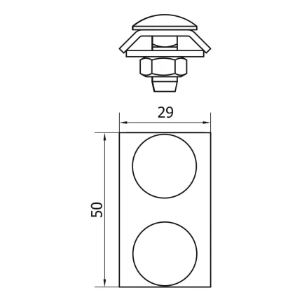 Les dimensions du raccord sont de 29 × 50 mm, ce qui assure une construction compacte tout en conservant une fonctionnalité complète. Grâce à ses dimensions réduites, le raccord s'adapte parfaitement aux espaces de montage restreints.