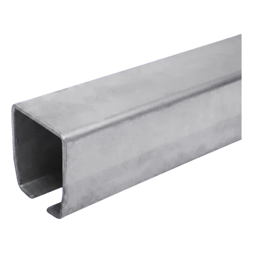 Le rail de guidage PSG 100×90×5 mm est un profilé en U acier robuste d'une longueur de 6 mètres, destiné au guidage des portails coulissants d'entrée. Il constitue un élément clé du système coulissant — monté dans les fondations, il crée une voie de roulement sur laquelle le portail se déplace sur des roulettes dédiées adaptées au profil du rail.