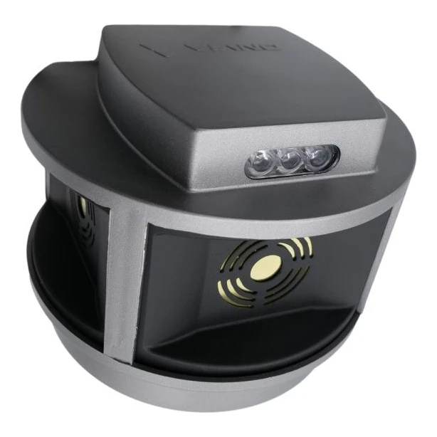L'appareil combine deux méthodes de répulsion : l'émission continue d'ondes ultrasonores avec changement automatique de fréquence et un panneau stroboscopique équipé de LED haute luminosité, activé par un radar de mouvement intégré. Apres détection d'un nuisible, le panneau génere une série de cinq flashs intenses par seconde qui effraient davantage l'intrus.