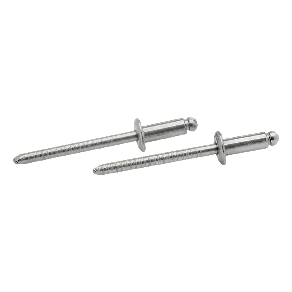 La surface cannelée de la tige assure un positionnement sûr dans la riveteuse et un déroulement stable du processus de rivetage. Grâce à l'utilisation d'acier inoxydable austénitique AISI 304, le rivet se caractérise par une haute résistance à la corrosion, permettant son utilisation tant à l'intérieur qu'à l'extérieur des bâtiments — sans risque de formation de rouille et de décoloration sur les éléments assemblés.