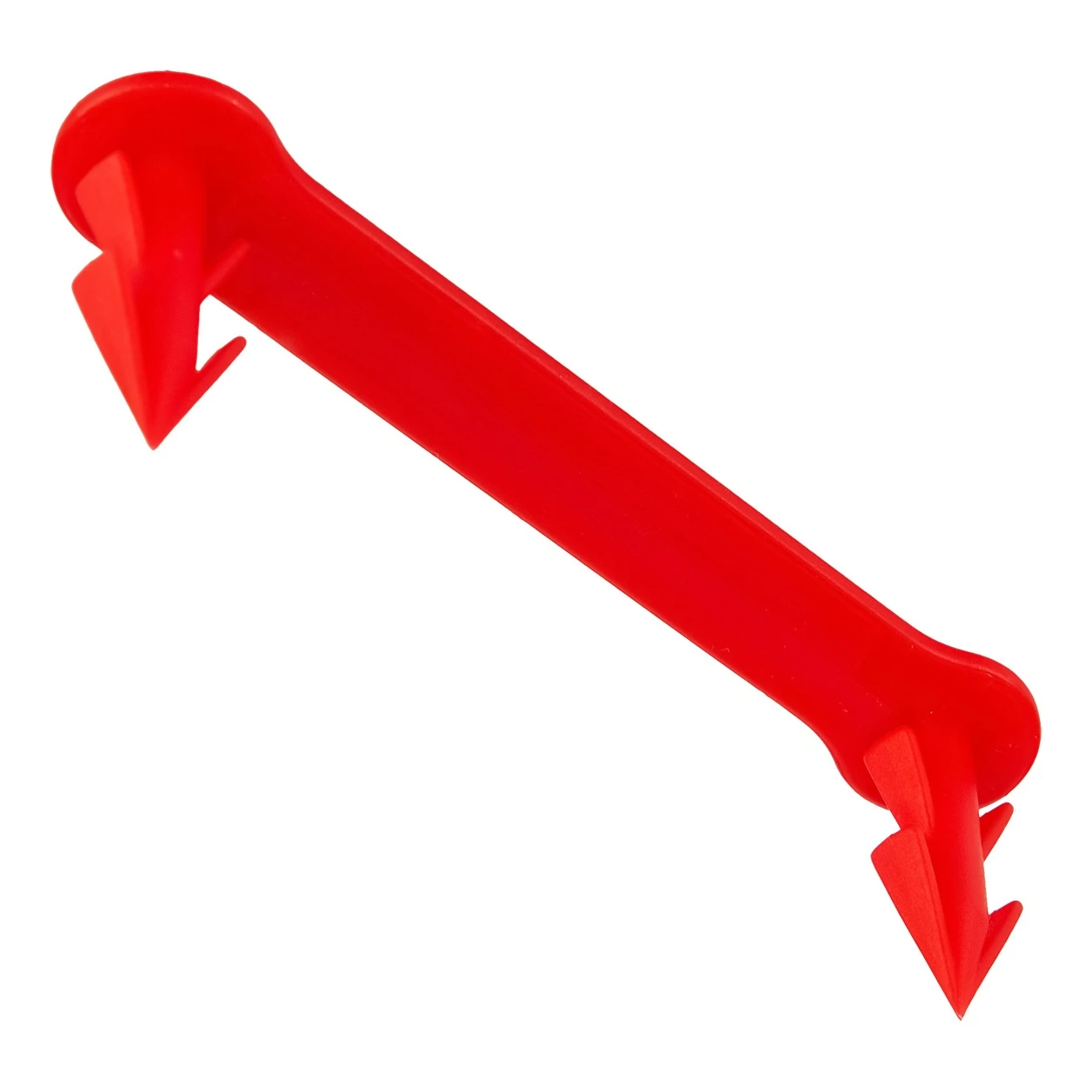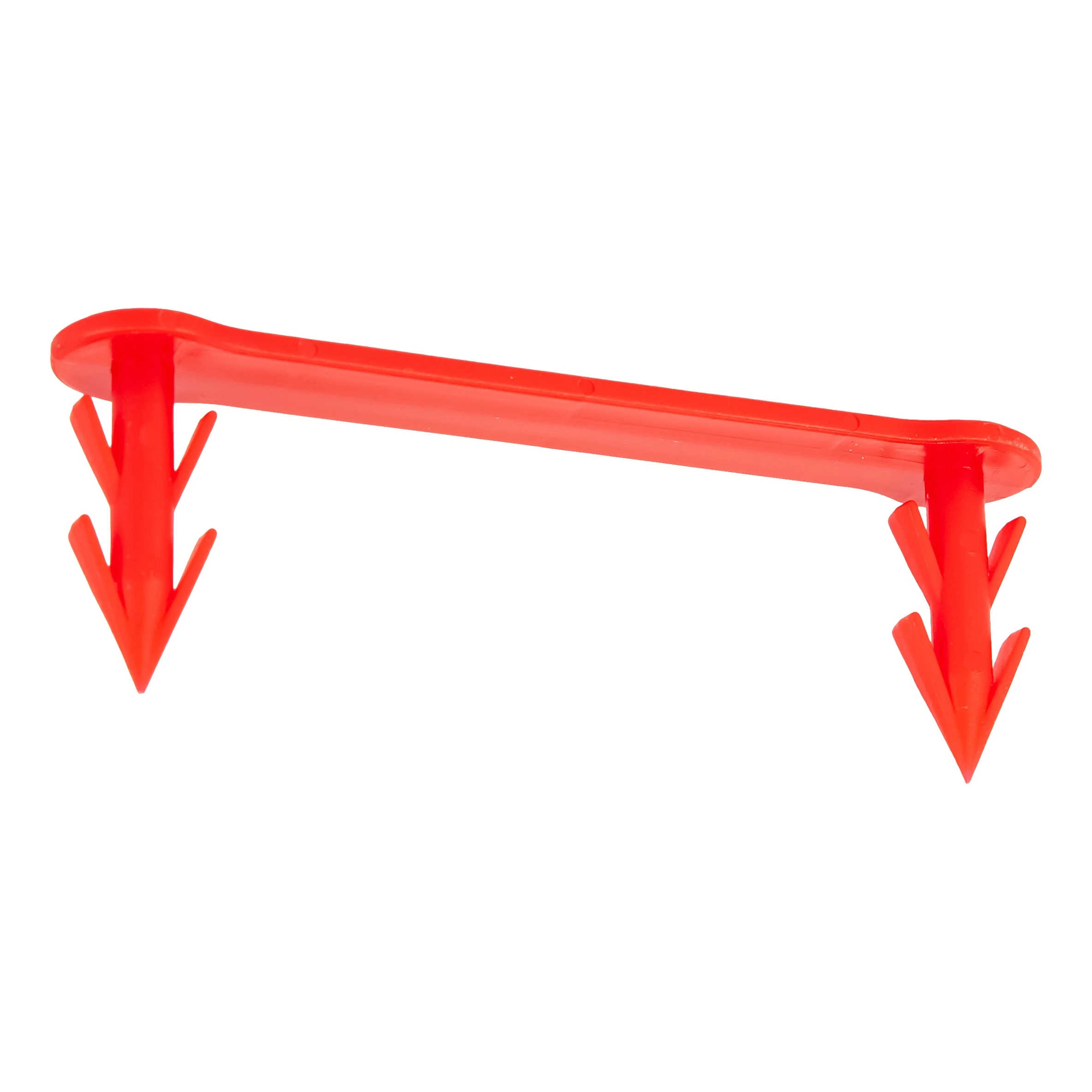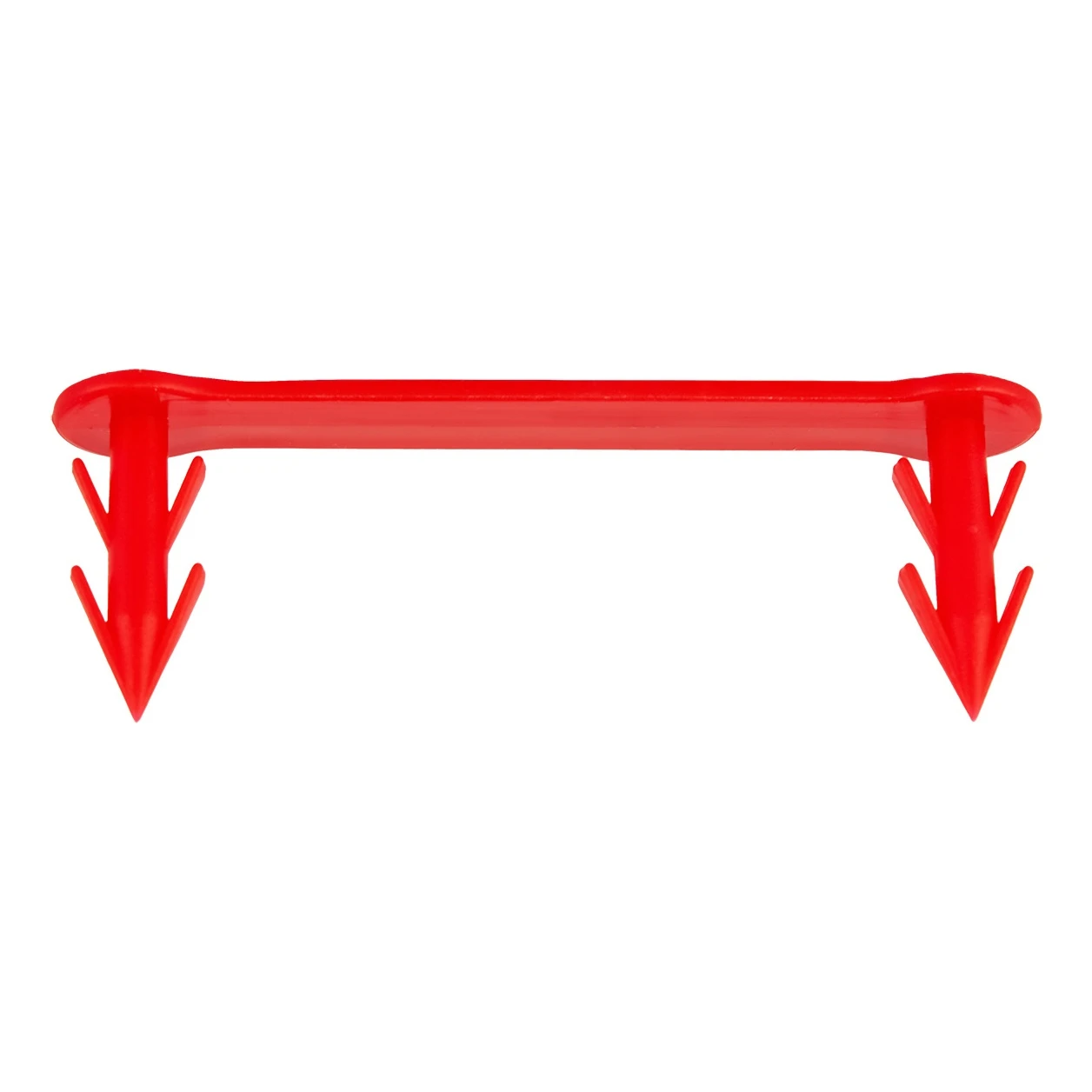 Materiaal en duurzaamheid – de klem is vervaardigd uit zuiver polypropyleen in rode kleur. Polypropyleen biedt weerstand tegen vocht, chemicaliën in de dekvloer en hoge flexibiliteit, zelfs bij lage temperaturen.