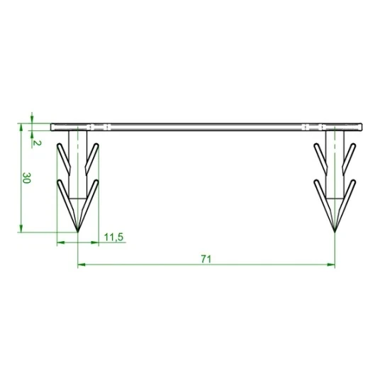 Toepassing – de klemmen zijn bestemd voor het bevestigen van verwarmingsbuizen in thermoformmatten (systeemmatten). Dankzij de hartafstand van 71 mm zijn ze perfect geschikt voor gangbare buisdiameters bij vloerverwarming.