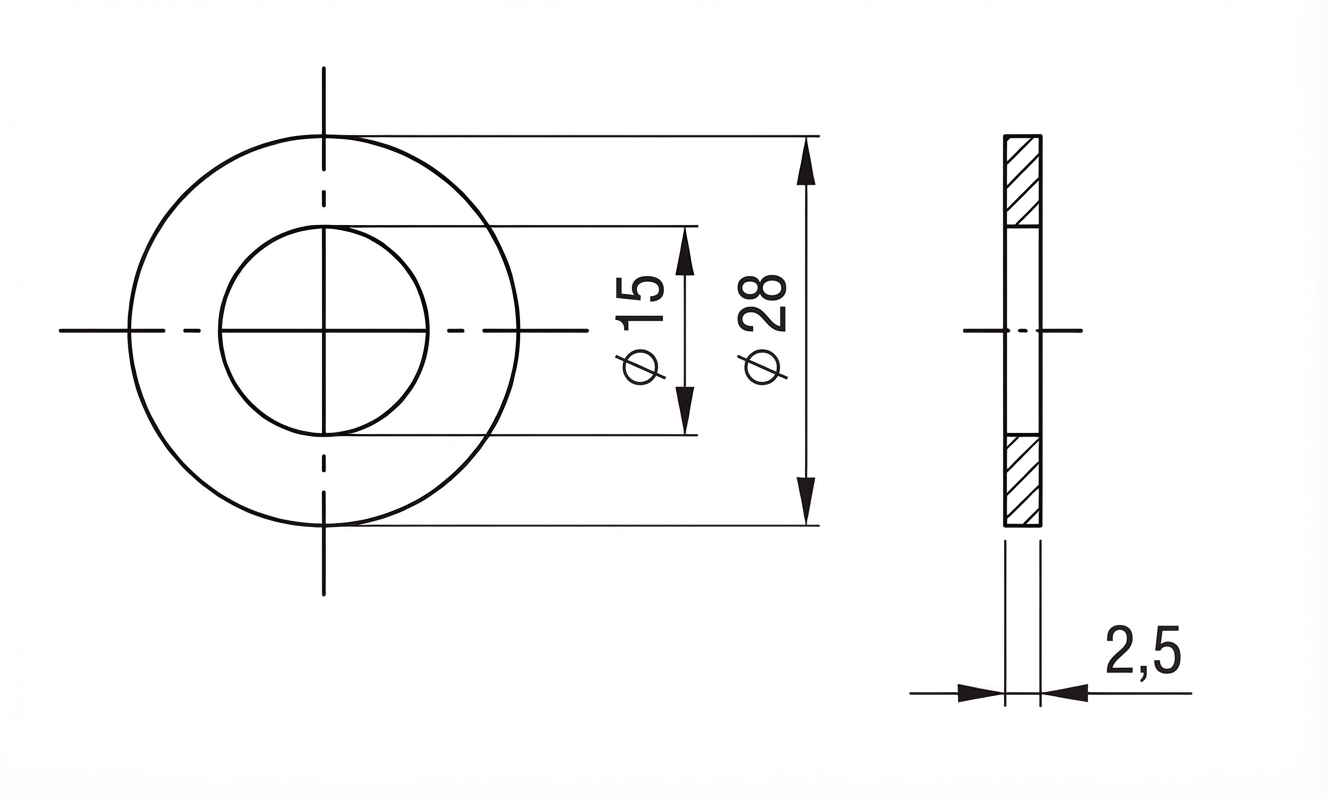 - Norme : DIN 125 (équivalent ISO 7089/7090)