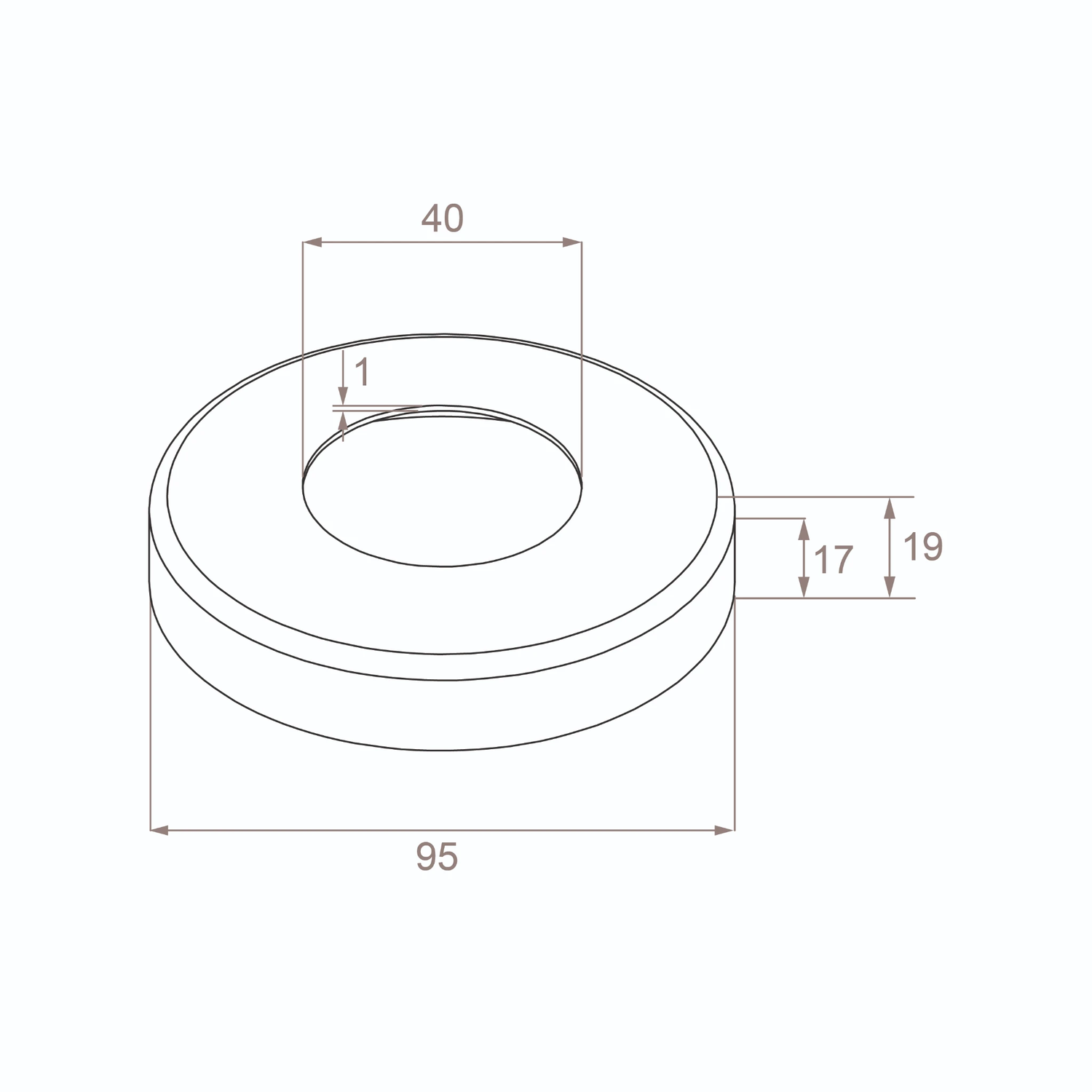 Rosace de masquage avec collerette destinée à la finition esthétique des passages de tubes de diamètre ø 40 mm à travers le sol, le plafond ou le mur. Elle convient parfaitement pour le montage de balustrades — elle cache les bases des poteaux, les trous de fixation ainsi que les vis de montage, donnant à la construction un aspect professionnel et élégant.