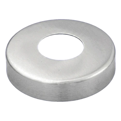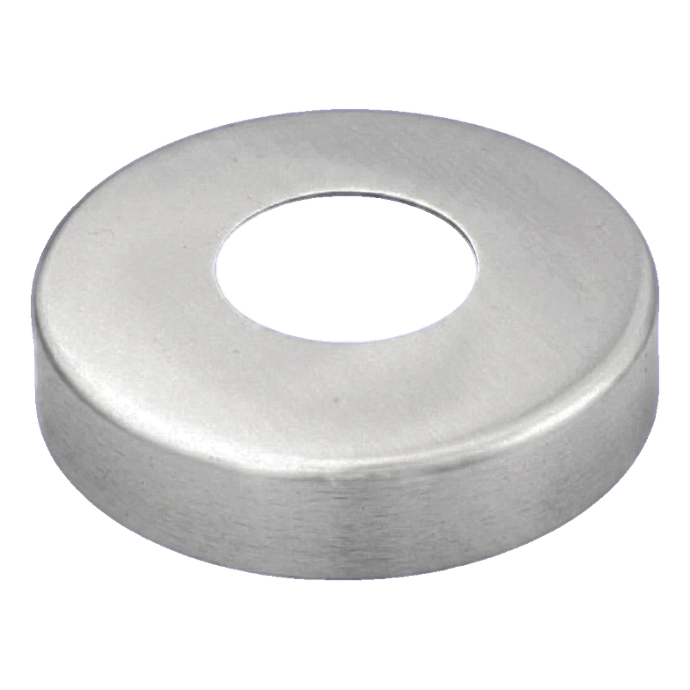 Rosace de masquage ronde destinée à couvrir les ouvertures de montage autour des tubes de diamètre Ø48,3 mm dans les garde-corps inoxydables. Donne à la construction un aspect esthétique et fini — élimine les fentes visibles et les imperfections aux endroits où le tube traverse le sol, le plafond ou un élément porteur du garde-corps.
