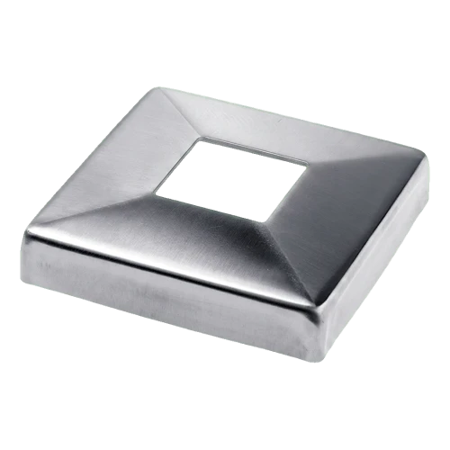 Rosette de masquage carrée 108×108 mm destinée aux profilés de balustrade de section 40×40 mm. Masque élégamment les ouvertures de montage dans les constructions de balustrades inoxydables, assurant une finition esthétique de chaque réalisation. Fabriquée en acier inoxydable AISI 304 avec finition polie (brillante) — garantit durabilité, résistance à la corrosion et aspect cohérent et moderne de l'ensemble de la balustrade.