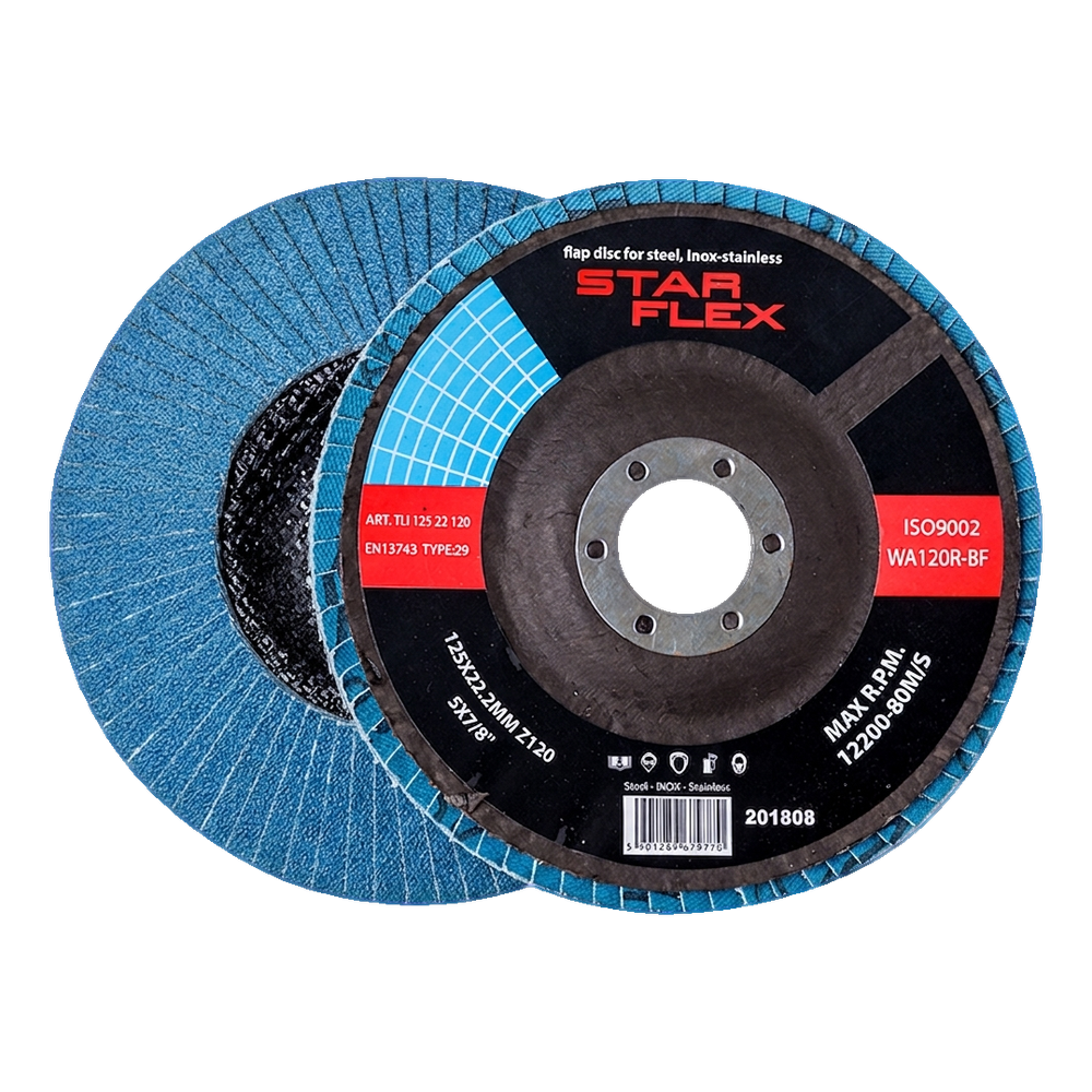 Le disque à lamelles courbé Star Flex T29 125 mm Z120 est un outil abrasif haut de gamme avec revêtement zircone, conçu pour l'usinage intensif de l'acier inoxydable (INOX) ainsi que de l'acier au carbone. Le grain zircone possède des propriétés d'auto-affûtage, ce qui se traduit par une longue durée de vie du disque et le maintien d'une performance élevée pendant toute la période d'exploitation — moins d'arrêts pour le changement d'outil signifie une finition plus rapide des commandes.