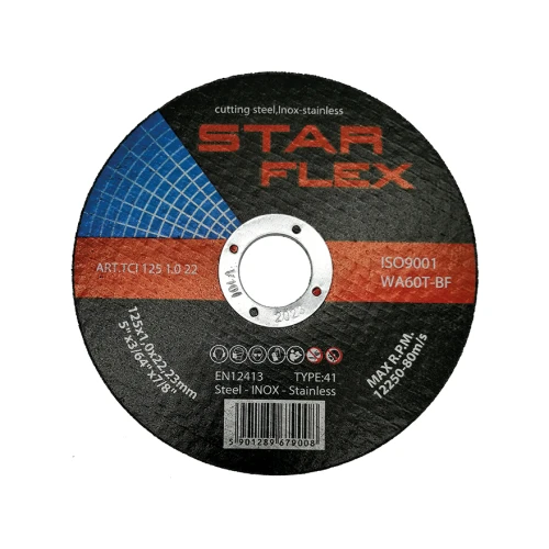 Le disque de coupe Star Flex 125×1,0 mm est une meule plate mince de type 41, conçue pour le découpage précis de l'acier noir, inoxydable (INOX) et résistant aux acides. Grâce à son épaisseur de seulement 1,0 mm, il assure des coupes rapides sans bavures avec une perte minimale de matériau — solution idéale pour les équipes d'installation travaillant avec des profilés en acier, tuyaux et structures métalliques sur chantier.