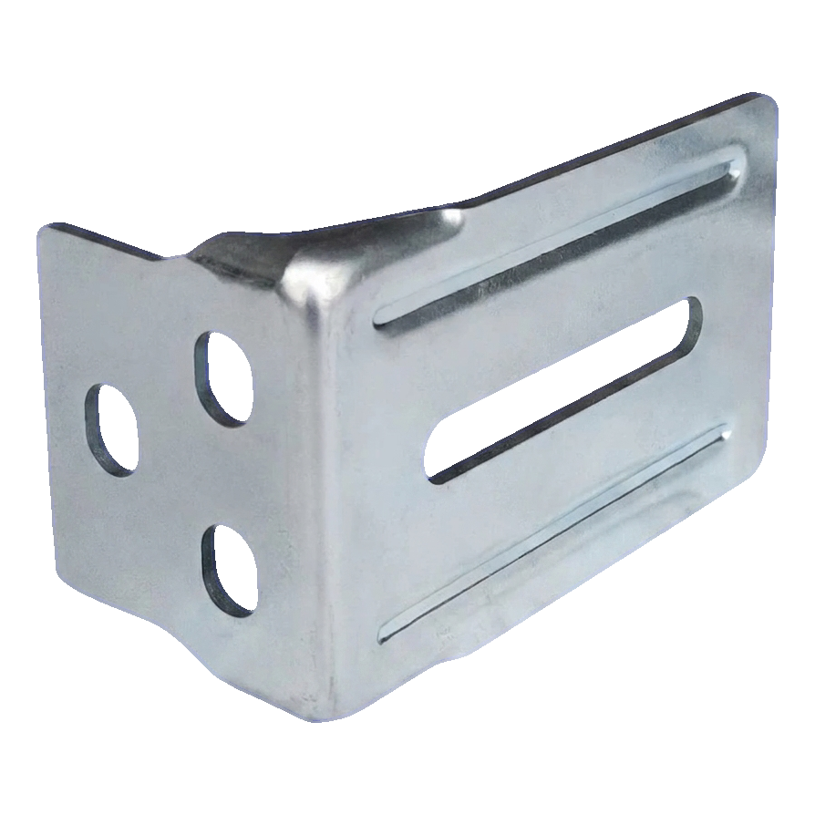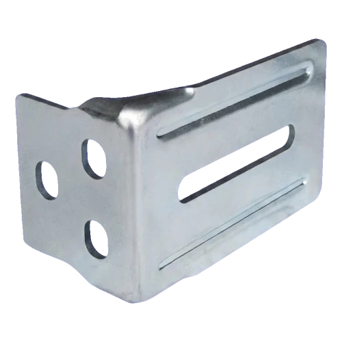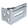 Le support a une forme en L et est équipé de trous oblongs (allongés) tant sur la bride verticale que sur la bride horizontale, ce qui permet un réglage précis de la position du dispositif d'arrêt lors du montage. Les trous ronds sur la paroi verticale servent à la fixation supplémentaire. Cette construction permet aux entreprises d'installation un montage rapide avec possibilité de correction de réglage sans nécessité de percer de nouveaux trous.