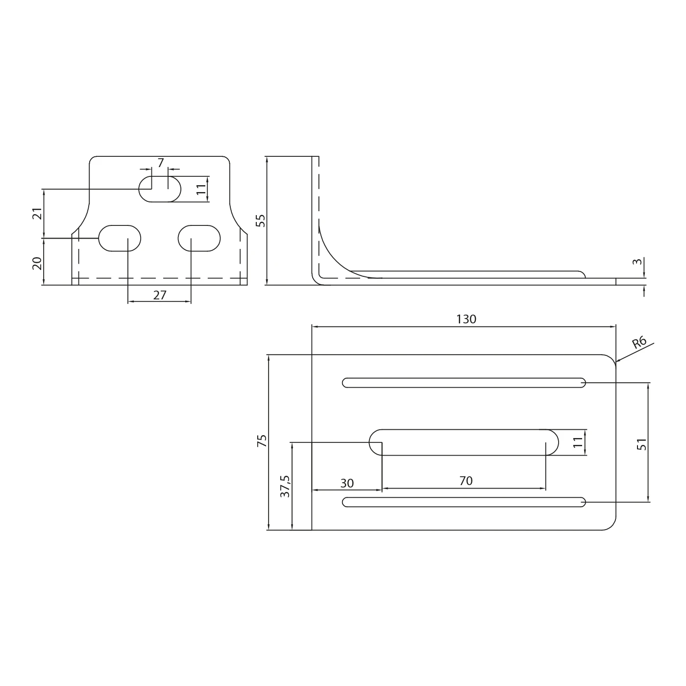 - Rayon d'arrondi des angles : R6