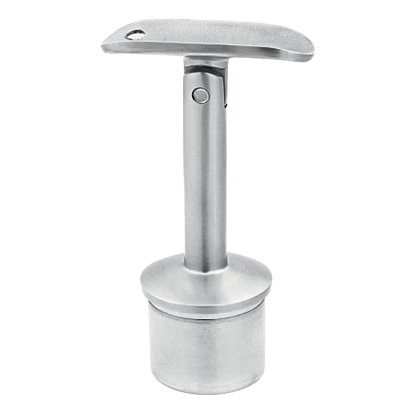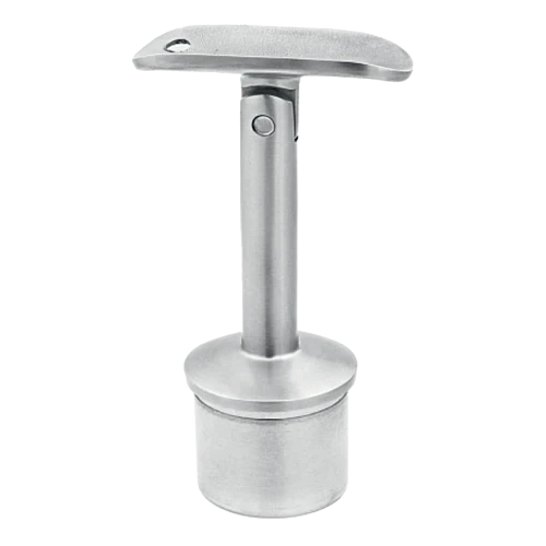 Le support est destiné à être collé dans le tube du poteau à l'aide de colle anaérobie. La colle durcit au contact du métal et se solidifie après coupure de l'apport d'air, ce qui assure une connexion durable et invisible sans nécessité de soudage. La construction articulée permet le réglage de l'angle de positionnement de la main courante après montage du support dans le poteau — cela raccourcit le temps de montage et élimine les erreurs de mesure.