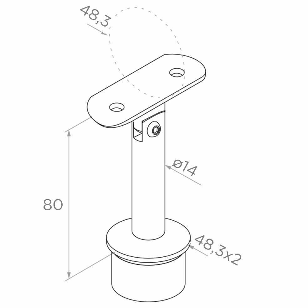 Support de main courante articulé collé 48,3 mm – acier inoxydable AISI 304 satiné