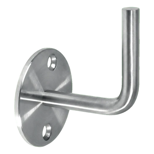 Le support est monté au mur au moyen de deux trous de montage dans la rosace circulaire, et la main courante se fixe par soudage au bras vertical de la tige. Cette solution garantit une rigidité et une stabilité maximales de toute la construction de balustrade, ce qui est crucial pour la sécurité des utilisateurs.