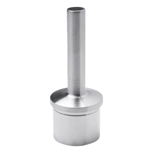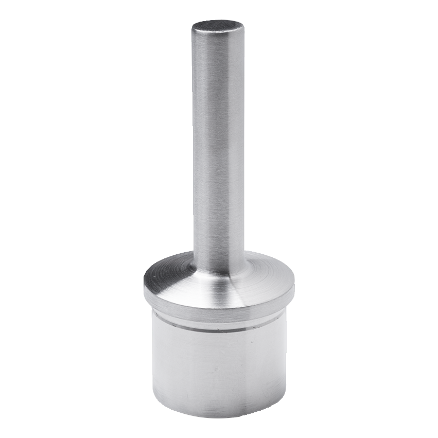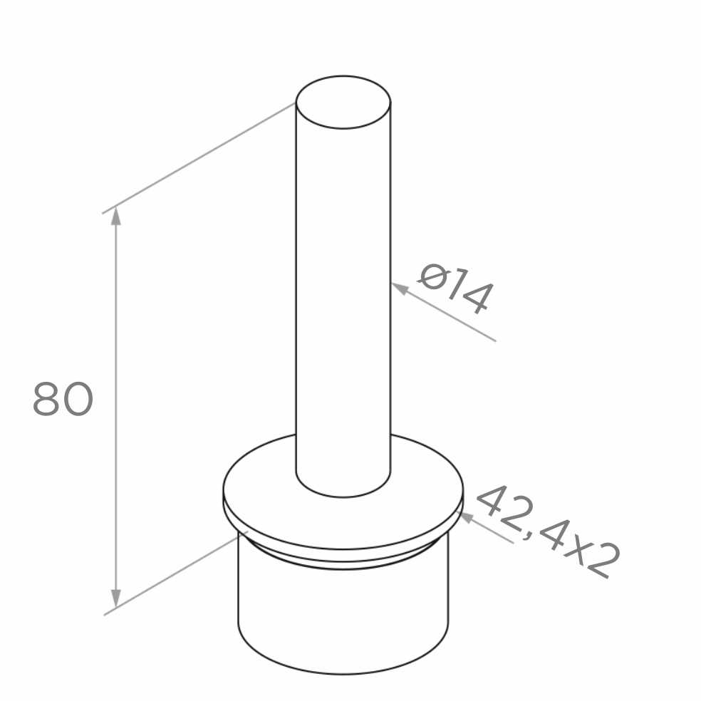 La tige de diamètre ø 14 mm et de hauteur totale 80 mm permet un placement sûr de la rampe, et la base compacte adaptée au tube 42,4 × 2 mm facilite le centrage et le montage. Grâce à la finition satinée, le produit s'harmonise parfaitement avec les autres éléments des systèmes de balustrades en acier inoxydable.