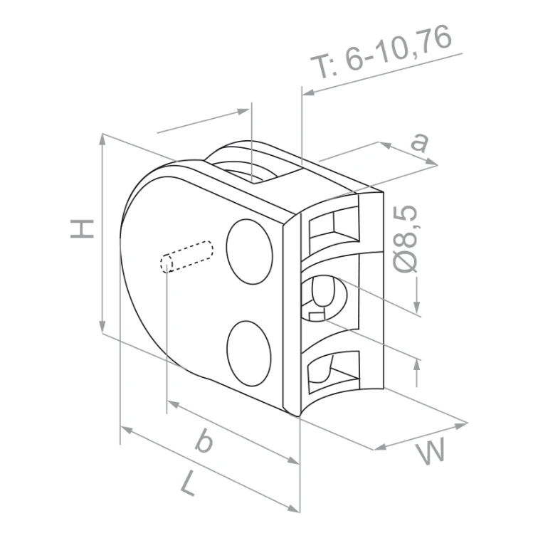 - Épaisseur du verre (T) : 6–10,76 mm