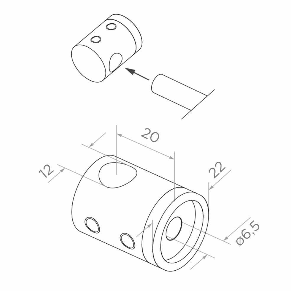 Produit fabriqué en acier inoxydable AISI 304 avec finition polie (brillante), ce qui garantit une haute résistance à la corrosion ainsi qu'un aspect élégant pendant des années d'exploitation. La construction compacte et cylindrique avec deux trous pour vis de serrage assure un blocage sûr de la barre à l'intérieur du support. Le trou de montage dans la base permet une fixation rapide au poteau ou à l'élément porteur de la balustrade.
