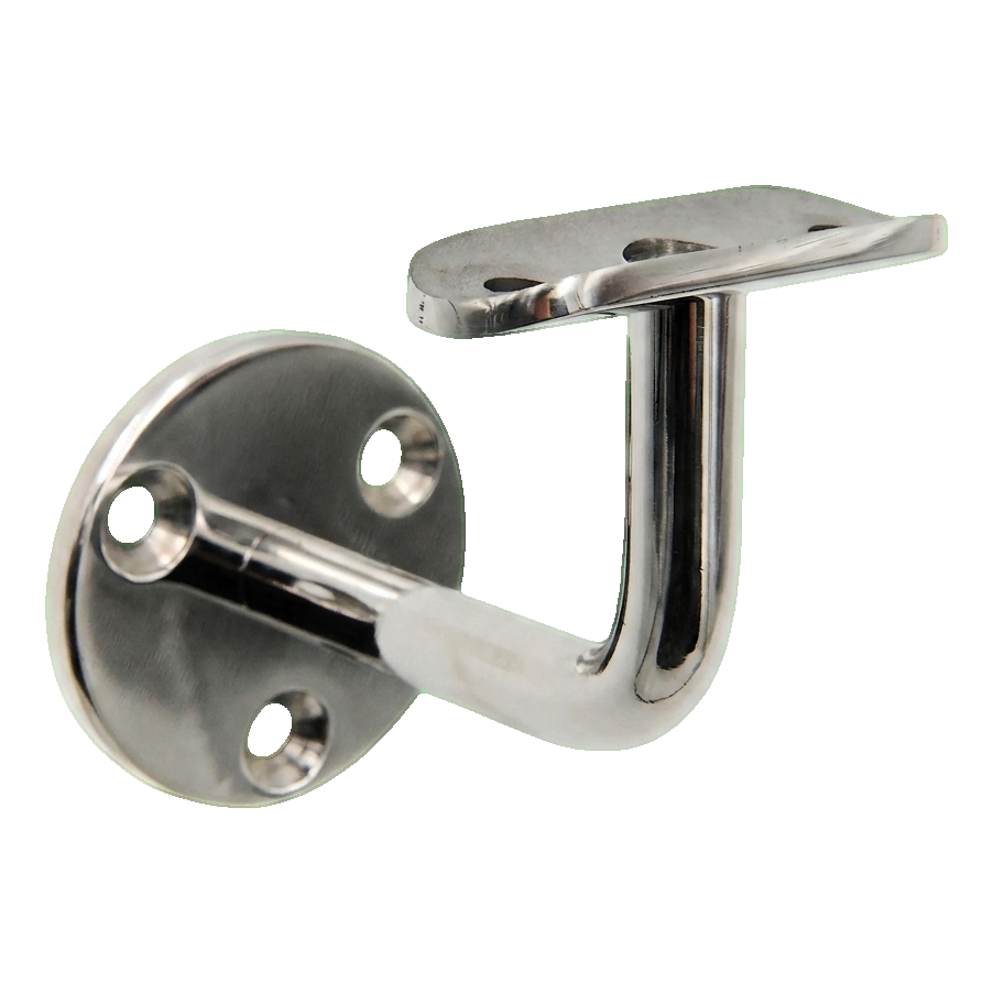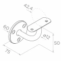 La plaque supérieure avec trous de fixation constitue un support stable pour la main courante, et le bras profilé de diamètre ø12 mm garantit rigidité et sécurité de fixation. La surface polie en acier inoxydable est extrêmement facile à entretenir — la plupart des salissures s'enlèvent avec un chiffon sec doux en microfibre, et les taches grasses avec un produit spécial pour acier inoxydable.