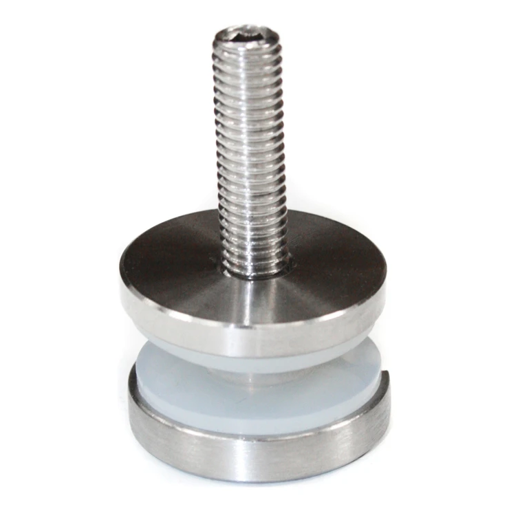 Le support ponctuel circulaire (rotule) permet une fixation rapide et sûre du panneau de verre dans la balustrade inoxydable. La construction avec douille d'entretoise d'épaisseur 4 mm permet de maintenir un espacement uniforme du verre par rapport à la surface de montage. L'ensemble comprend un kit complet de joints isolants qui protègent le verre du contact direct avec l'acier — éliminant le risque de fissures et assurant un fonctionnement silencieux et stable de la fixation.