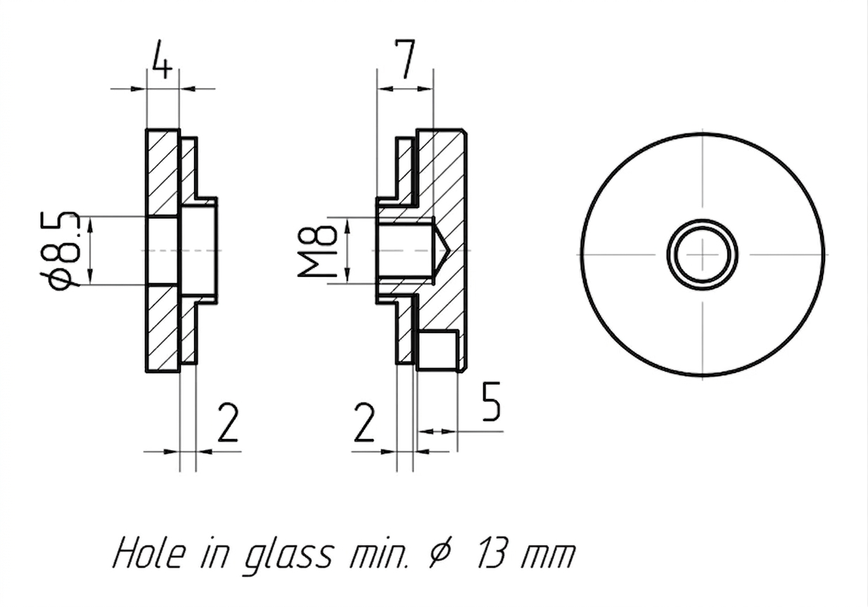 Le support est destiné aux verres d'épaisseur de 4 mm à 16,76 mm (y compris verre feuilleté VSG). Le diamètre minimal du trou de montage dans le verre est de ø 13 mm. Grâce au filetage universel M8, l'élément s'intègre facilement aux systèmes typiques de balustrades inoxydables montées sur murs, poteaux et constructions planes.
