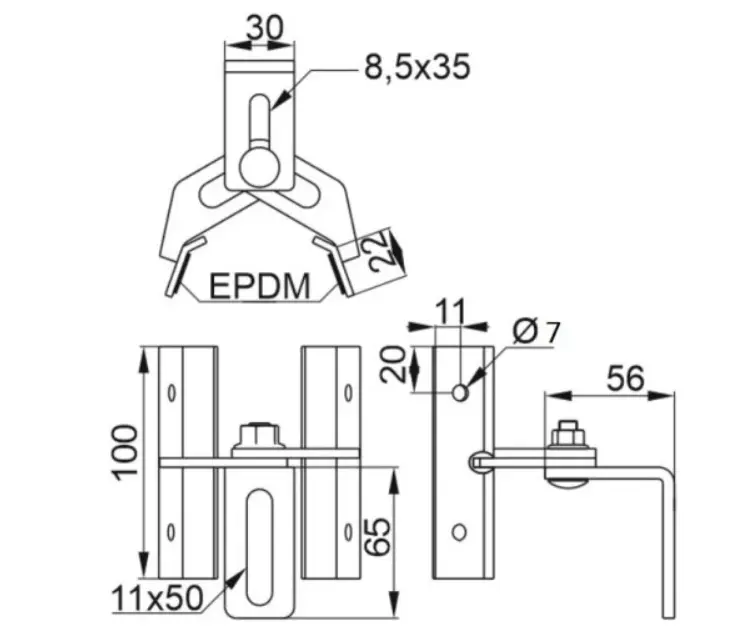 Support réglable pour tôle trapézoïdale, acier inoxydable 1.4016, 100 mm, pour systèmes photovoltaïques.