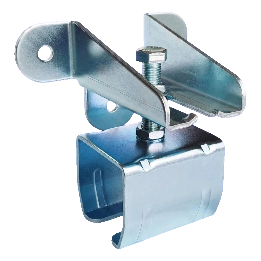 La suspente murale pour profilé 64×68 mm de la marque PSG est un élément de suspension solide pour rail de guidage utilisé dans les systèmes de portails suspendus. Fabriqué en tôle d'acier épaisse de 4 mm avec revêtement galvanisé, il assure une fixation durable et stable du rail au mur ou au linteau. Grâce à la vis M16 avec écrous, l'installateur bénéficie d'un réglage fluide de la distance au mur dans la plage de 52–125 mm, permettant un positionnement précis du rail de guidage du portail même sur une surface de montage inégale.
