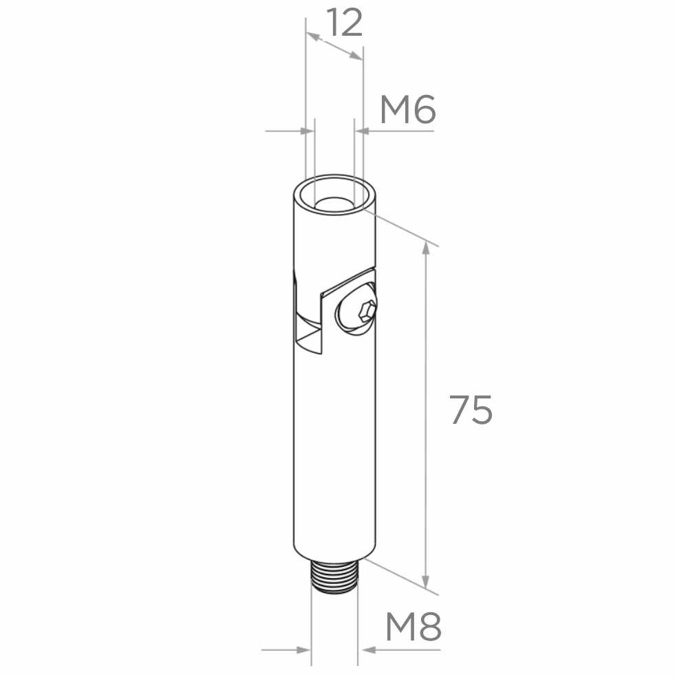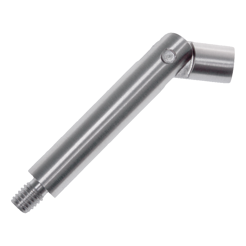 La tige articulée est destinée au montage de mains courantes sur supports dans les systèmes de balustrades en acier inoxydable. Le filetage externe M8 se visse dans le support, et le filetage interne M6 reçoit la vis de fixation de la main courante. Grâce à sa construction articulée, l'élément compense les différences d'angles d'inclinaison — particulièrement utile pour les escaliers et rampes, où l'inclinaison de la main courante change sur les sections droites et les virages.