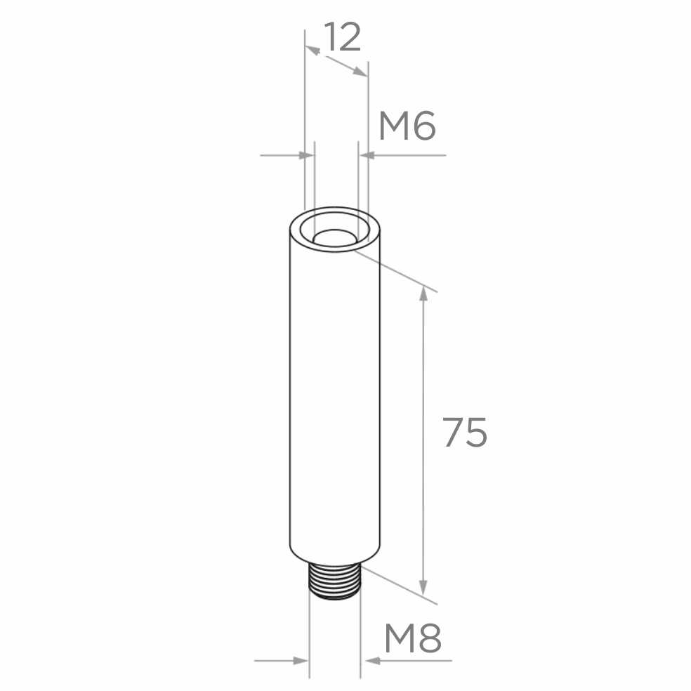 Tige de support de main courante ø 12×75 mm AISI 304 – filetage M8/M6, satiné