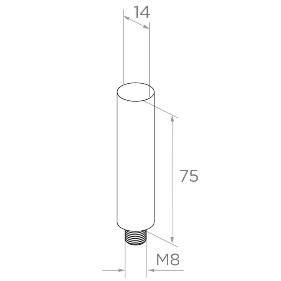 Tige de support de main courante de balustrade ø 14×75 mm AISI 304 – filetage M8, satiné