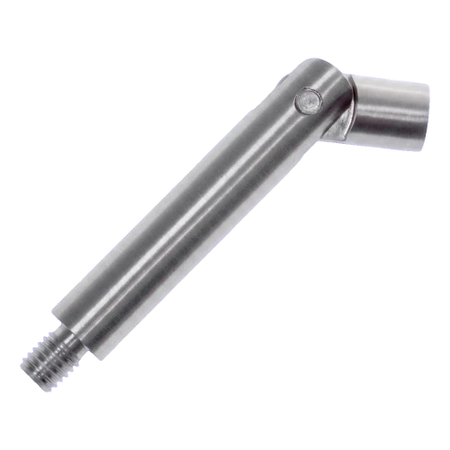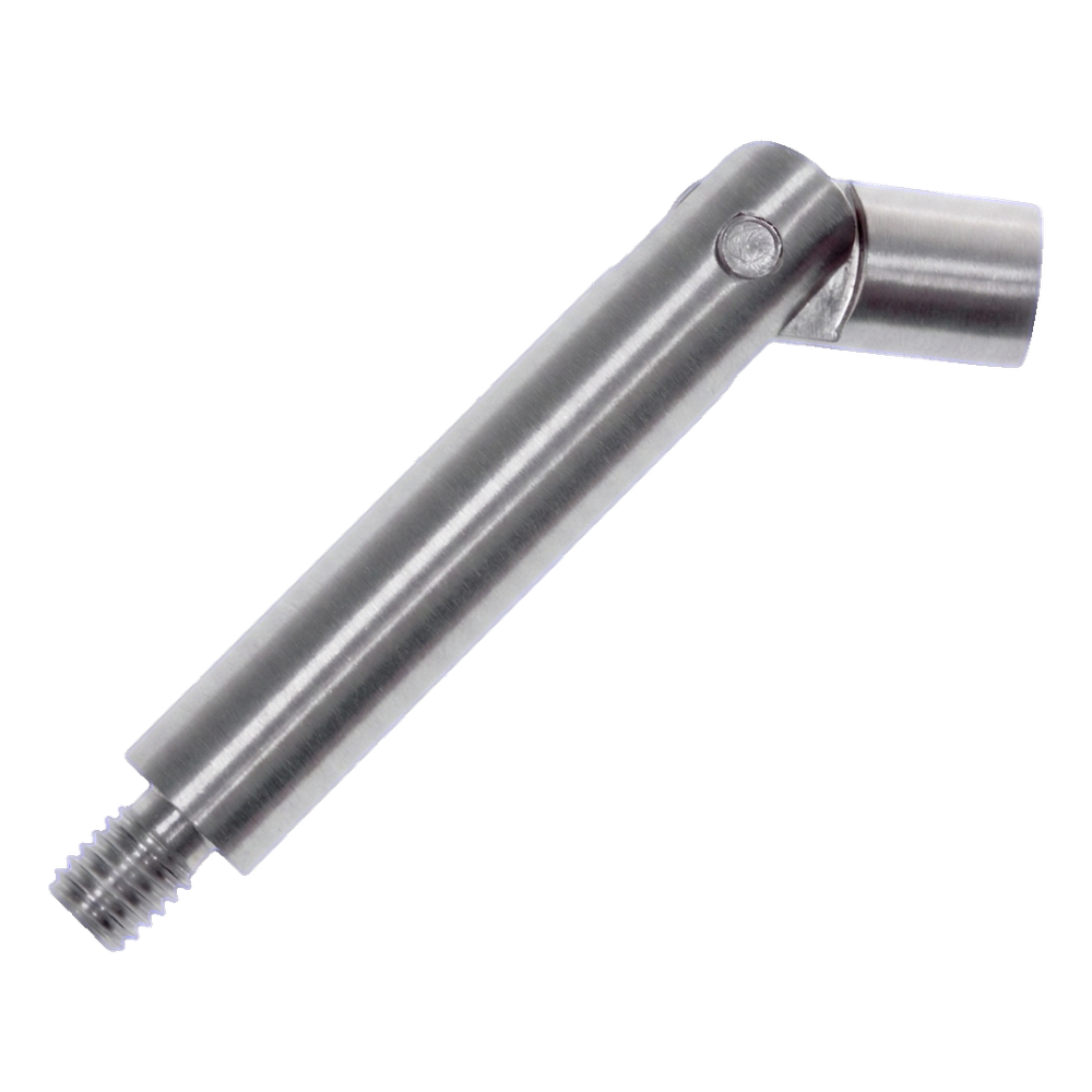 La tige de support main courante articulée se visse par le filetage M8 dans le montant de balustrade, et dans le filetage intérieur supérieur M6 se monte le support de main courante. Le mécanisme d'articulation permet de régler l'angle approprié de la main courante après montage, ce qui facilite considérablement l'installation sur des escaliers de différentes inclinaisons. Grâce à cela, un seul élément couvre plusieurs variantes de géométrie d'escaliers — cela réduit le nombre de références en stock et accélère la réalisation des commandes.
