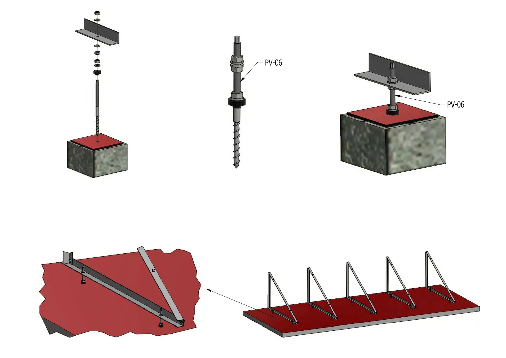 - Les triangles sont constitués de cornières 40×40×3. Le produit est fabriqué en aluminium 6060, ce qui garantit une construction légère, une résistance à la surcharge mécanique et une résistance aux conditions environnementales défavorables.