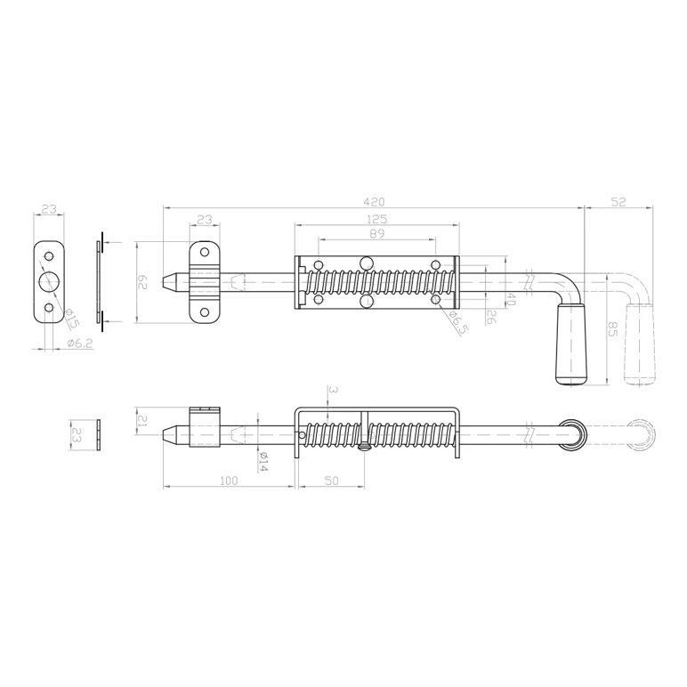Verrou à ressort 420×14 mm zingué – pour portails et portillons