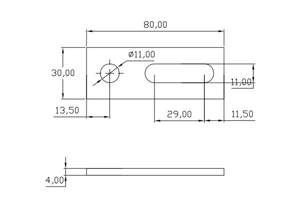 Adaptateur de montage plat, acier inoxydable H17 1.4016, M10 80x30x4mm, pour systèmes photovoltaïques.
