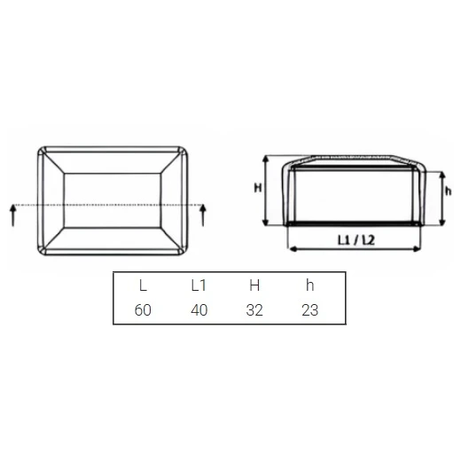 De afdekdop is geschikt voor alle situaties waar een esthetische en duurzame afwerking van rechthoekige profielen 60x40 mm nodig is — van panelhekken en balustrades, via stalen en aluminium constructies, tot elementen van straatmeubilair, speelplaatsen of werkplaatsmeubilair.