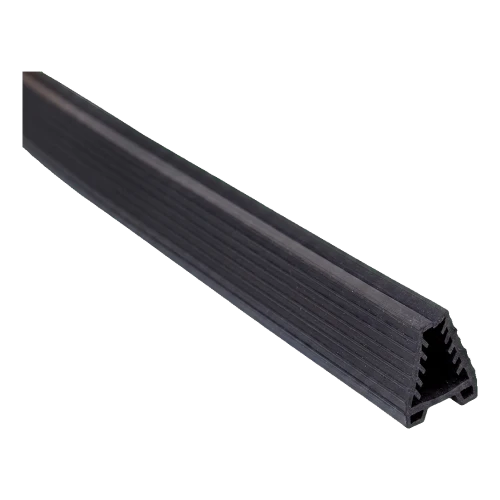 Het profiel met driehoekige doorsnede met interne kamers zorgt voor gelijkmatige druk over de gehele lengte van de greep en dempt trillingen en spanningen van de glasplaat. Het elastische materiaal compenseert glastoleranties in het bereik van 1,5 mm, waardoor één maat afdichting verschillende glasplaten kan bedienen — een handige oplossing bij bestellingen met meerdere beglazingsvarianten.