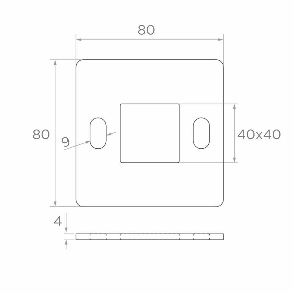 De compacte afmetingen en geringe dikte van slechts 4 mm maken dat de plaat uitstekend geschikt is als basiselement in roestvrijstalen balustradensystemen. De ovale gaten (langgaten) met breedte 9 mm maken regeling van de bevestigingspositie mogelijk, wat bijzonder handig is bij montage op ongelijke ondergronden of wanneer de schroefafstand moet worden aangepast. De centrale vierkante opening 40×40 mm zorgt voor een stevige plaatsing van het balustradepaal-profiel.