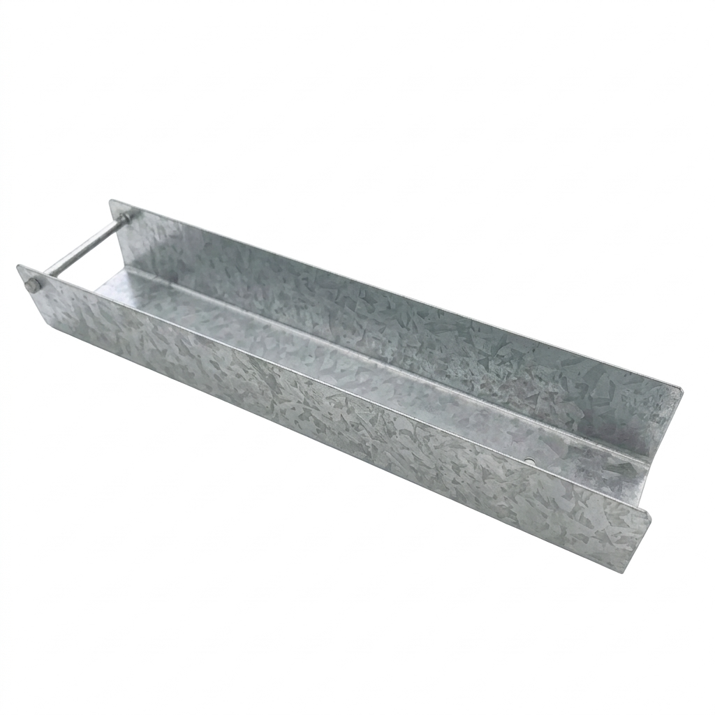 Het C-profiel heeft een profiel in de vorm van de letter C, waarin de betonnen funderingsplaat wordt geplaatst. De binnenwijdte van het profiel bedraagt 52 mm, wat zorgt voor vrije en stabiele plaatsing van een plaat met een dikte van 50 mm met een kleine montageruimte die het plaatsen vergemakkelijkt. De ingebouwde dwarsstaaf Ø 6 mm fungeert als blokkering — voorkomt dat het funderingselement uit de bevestiging schuift, waardoor de duurzaamheid en veiligheid van de hele omheiningconstructie wordt vergroot.