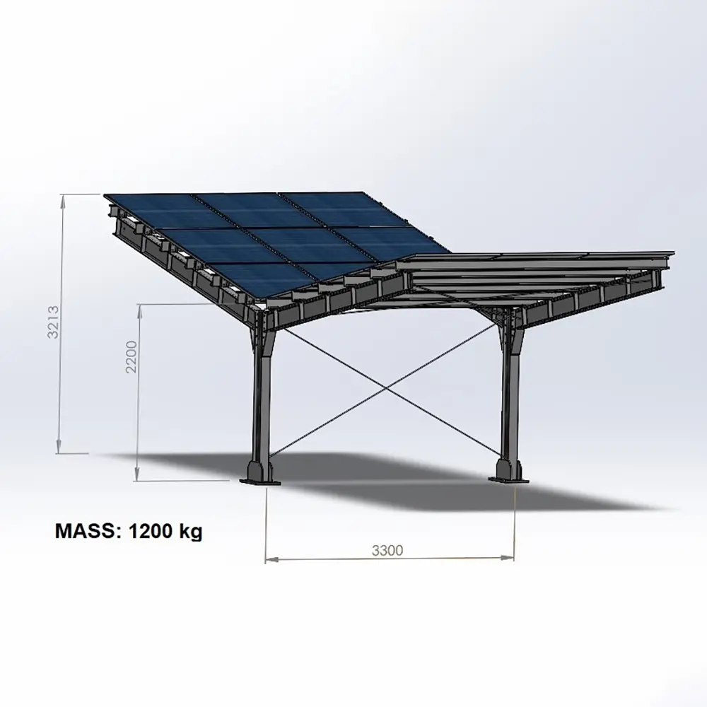 Het is mogelijk om de schuur in een andere maat te maken volgens jouw richtlijnen. Neem contact met ons op en ons team maakt een offerte voor uw fotovoltaïsche schuur volgens uw richtlijnen en behoeften.
