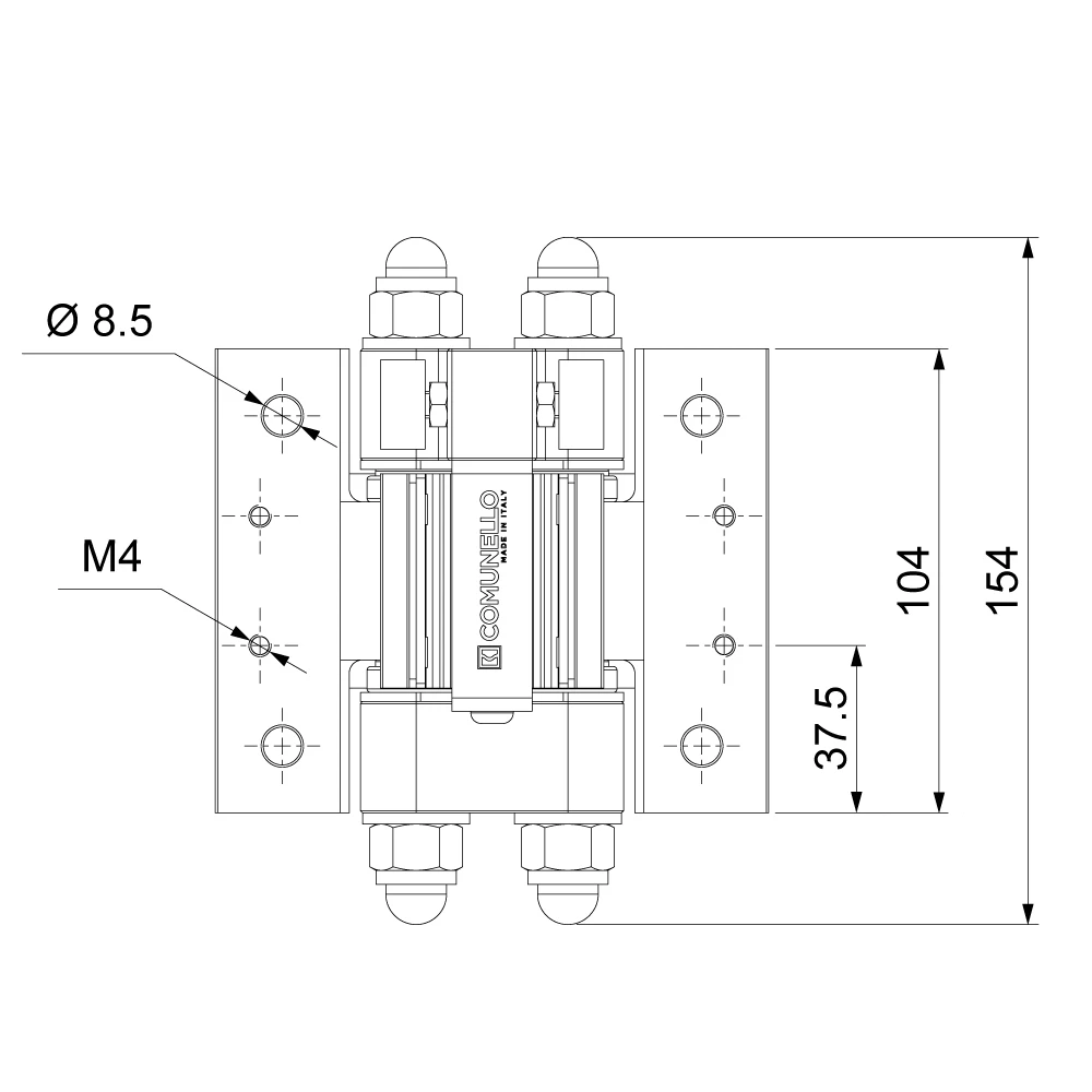 Afmetingen bovenste scharnier (technische tekening)