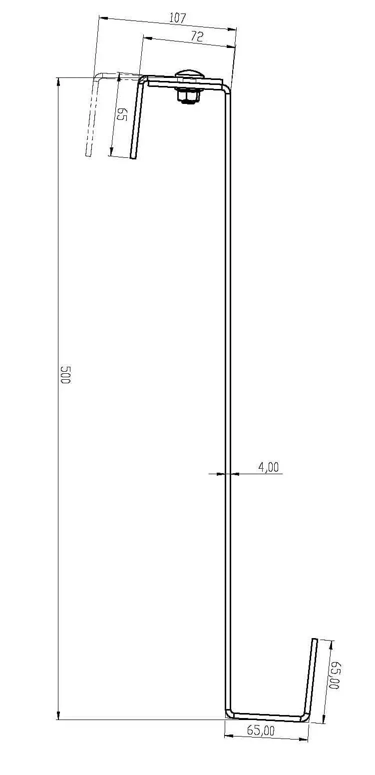 Le crochet S est conçu pour le montage de panneaux photovoltaïques sur une toiture couverte de tuiles en céramique ou en béton d'une épaisseur maximale de 60 mm. Le support permet de fixer des rails de montage de dimensions 40×40 mm sur des liteaux d'une épaisseur maximale de 50 mm. Fabriqué en acier inoxydable, il garantit une protection contre les conditions atmosphériques défavorables. Dans la partie supérieure de l'élément se trouve un orifice M7, pour une vis M6, qui permet de visser le support au liteau et d'augmenter la rigidité de la structure. L'orifice oblong dans la tige permet d'ajuster le positionnement des rails de montage.