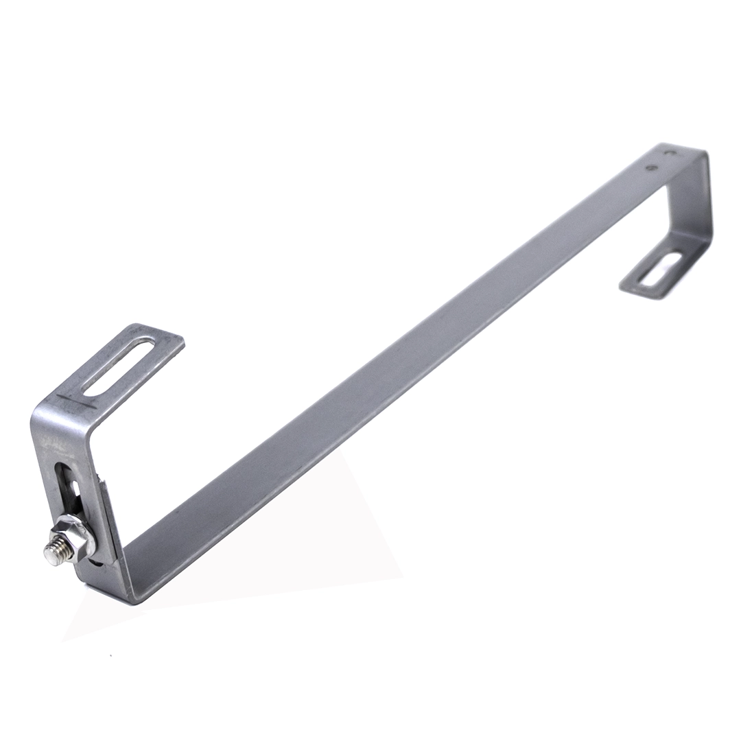 Crochet de Toit S Réglable pour toitures inclinées, acier inoxydable 1.4016 de dimensions 500x30x4 mm avec orifice M10 pour profilé destiné aux systèmes photovoltaïques.