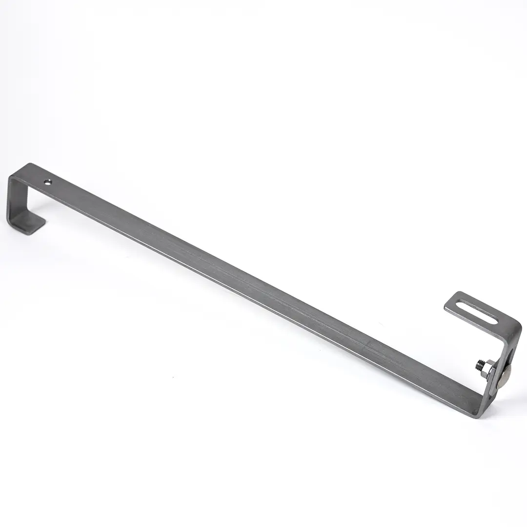Crochet de Toit S Réglable pour toitures inclinées, acier inoxydable 1.4016 de dimensions 530x30x4 mm avec orifice M10 pour profilé destiné aux systèmes photovoltaïques.