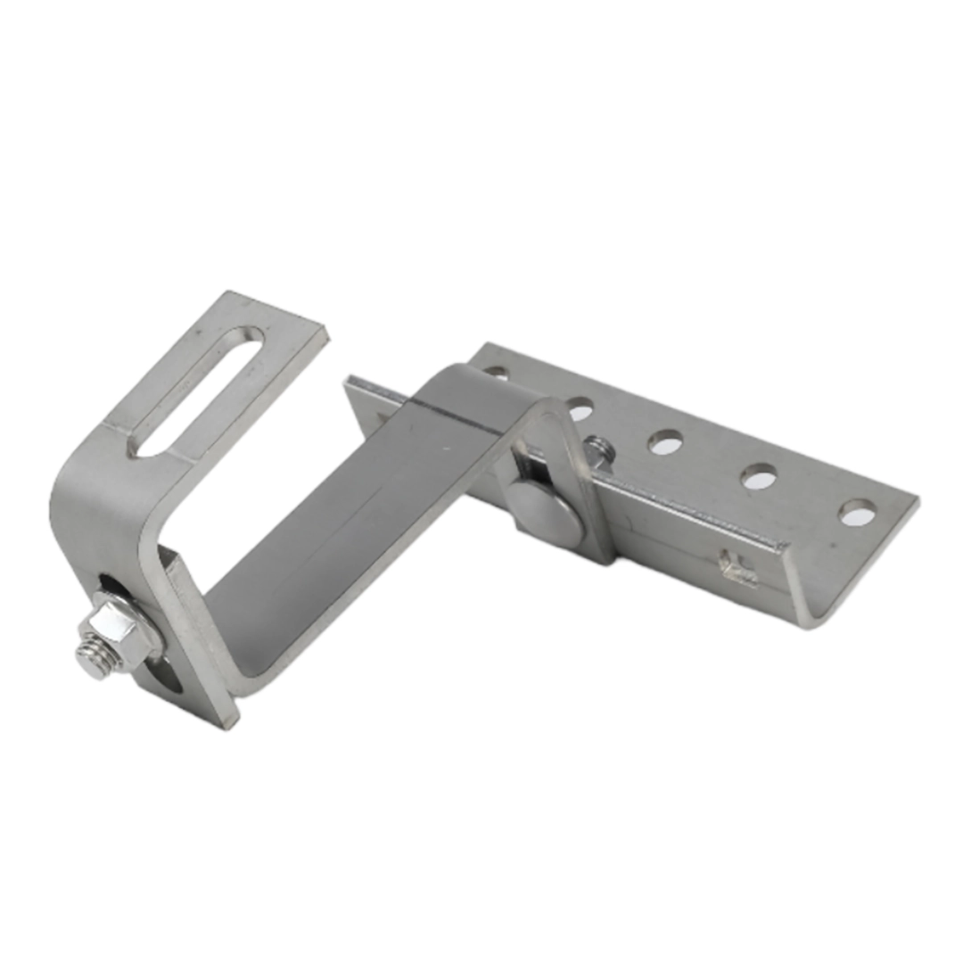 Crochet de Toit Vario 3X Réglable, acier inoxydable A2 1.4301, dimensions 120x30x5/4mm avec trou M10 pour profilé destiné aux systèmes photovoltaïques.