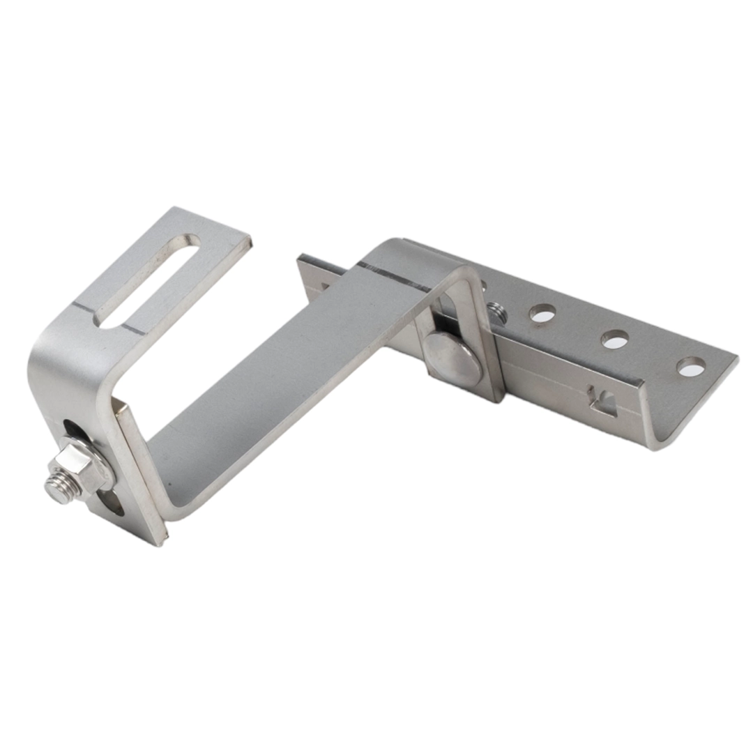Crochet de Toit Vario 3X Réglable, acier inoxydable A2 1.4301, dimensions 145x30x5/4mm avec trou M10 pour profilé destiné aux systèmes photovoltaïques.
