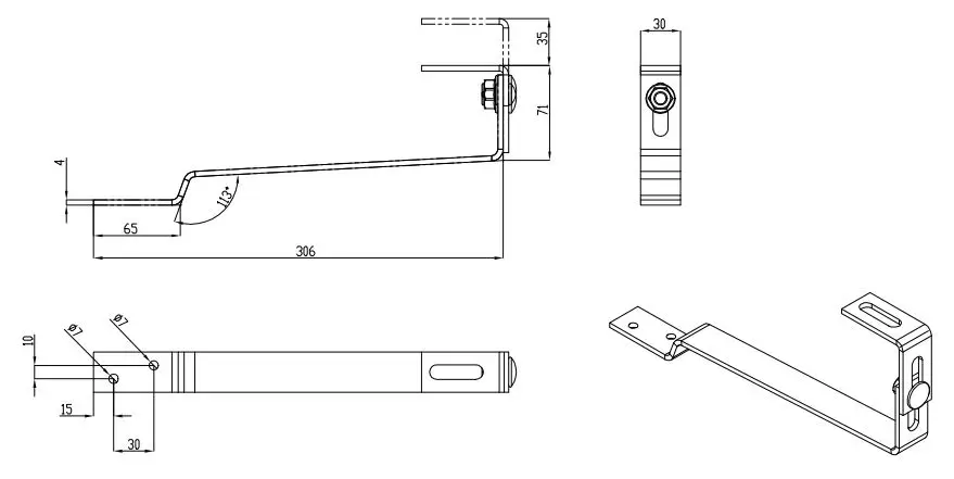 Crochet de toit pour toitures couvertes de tuiles plates, acier inoxydable 1.4016, 306mm M10 pour systèmes photovoltaïques.