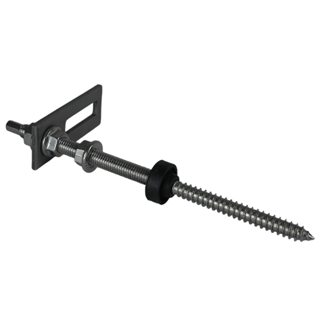 Montageadapter voor installatie van het fotovoltaïsche systeem is gemaakt van roestvrij staal, wat zorgt voor langdurige prestaties zonder vervanging. Compatibel met dubbelzijdige schroeven voor platen en daken.