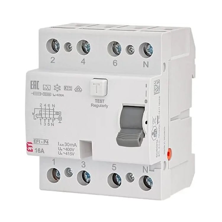 Aardlekschakelaar 4P 25A 30mA typ AC EFI6-P4 AC 25/0.03 002061651 ETI is een apparaat dat wordt gebruikt om een elektrisch circuit te beveiligen. Het beschermt het elektrische netwerk en de apparatuur die erop is aangesloten tegen schade en beschermt gebruikers tegen elektrische schokken, hetzij door indirect of direct contact.